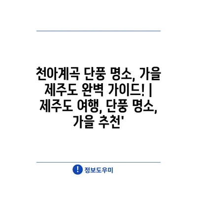 천아계곡 단풍 명소, 가을 제주도 완벽 설명서! | 제주도 여행, 단풍 명소, 가을 추천’ 에 대해 자주 묻는 질문 TOP 5