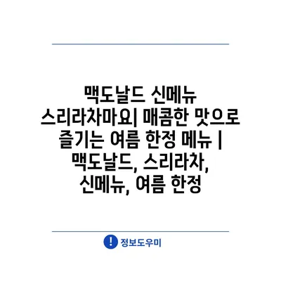 맥도날드 신메뉴 스리라차마요| 매콤한 맛으로 즐기는 여름 한정 메뉴 | 맥도날드, 스리라차, 신메뉴, 여름 한정