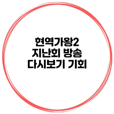 현역가왕2에서 방송 다시보기는 시청자들이 놓친 회차를 즐길 수 있는 좋은 기회입니다. 다음은 방송 다시보기가 왜 필요한지에 대한 몇 가지 이유입니다.