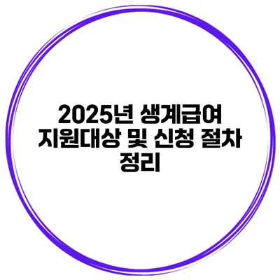 ✅ 2025년 생계급여 지원대상과 절차를 빠르게 알아보세요!