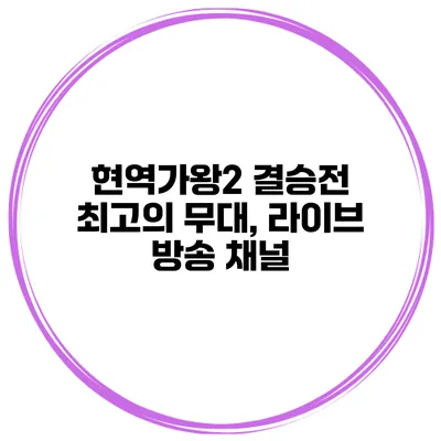 현역가왕2의 결승전을 놓치지 않으려는 많은 팬들과 시청자들을 위해 라이브 방송은 필수적이에요. 여러 방송사와 온라인 플랫폼에서 이 특별한 순간들을 실시간으로 즐길 수 있어요.