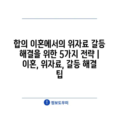 합의 이혼에서의 위자료 갈등 해결을 위한 5가지 전략 | 이혼, 위자료, 갈등 해결 팁에 대해 자주 묻는 질문 TOP 5