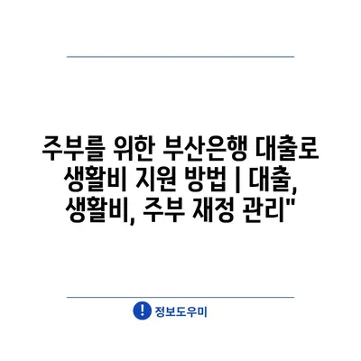 주부를 위한 부산은행 대출로 생활비 지원 방법 | 대출, 생활비, 주부 재정 관리