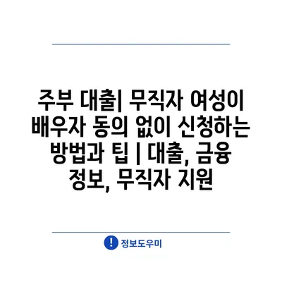 주부 대출| 무직자 여성이 배우자 동의 없이 신청하는 방법과 팁 | 대출, 금융 정보, 무직자 지원