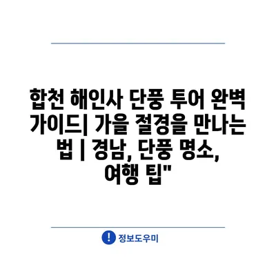 합천 해인사 단풍 투어 완벽 설명서| 가을 절경을 만나는 법 | 경남, 단풍 명소, 여행 팁