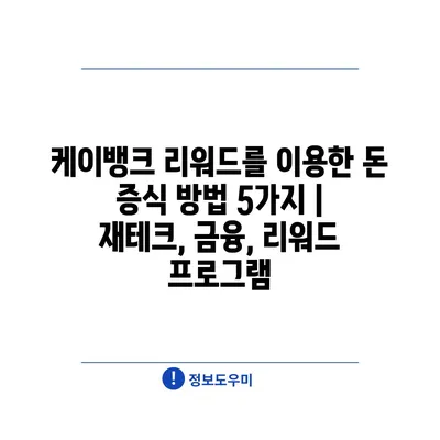 케이뱅크 리워드를 이용한 돈 증식 방법 5가지 | 재테크, 금융, 리워드 프로그램에 대해 자주 묻는 질문 TOP 5
