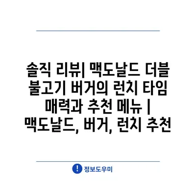 솔직 리뷰| 맥도날드 더블 불고기 버거의 런치 타임 매력과 추천 메뉴 | 맥도날드, 버거, 런치 추천