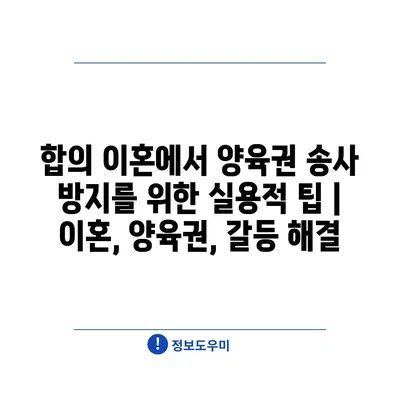 합의 이혼에서 양육권 송사 방지를 위한 실용적 팁 | 이혼, 양육권, 갈등 해결