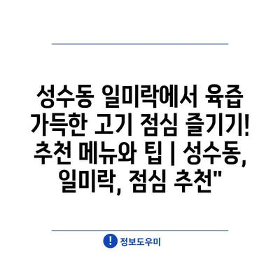 성수동 일미락에서 육즙 가득한 고기 점심 즐기기! 추천 메뉴와 팁 | 성수동, 일미락, 점심 추천
