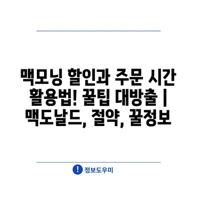 맥모닝 할인과 주문 시간 활용법! 꿀팁 대방출 | 맥도날드, 절약, 꿀정보
