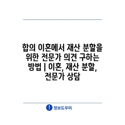 합의 이혼에서 재산 분할을 위한 전문가 의견 구하는 방법 | 이혼, 재산 분할, 전문가 상담 에 대해 자주 묻는 질문 TOP 5