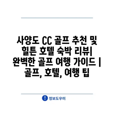 사양도 CC 골프 추천 및 힐튼 호텔 숙박 리뷰| 완벽한 골프 여행 가이드 | 골프, 호텔, 여행 팁