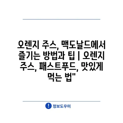 오렌지 주스, 맥도날드에서 즐기는 방법과 팁 | 오렌지 주스, 패스트푸드, 맛있게 먹는 법에 대해 자주 묻는 질문 TOP 5