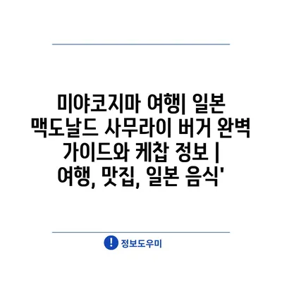 미야코지마 여행| 일본 맥도날드 사무라이 버거 완벽 설명서와 케찹 정보 | 여행, 맛집, 일본 음식’에 대해 자주 묻는 질문 TOP 5