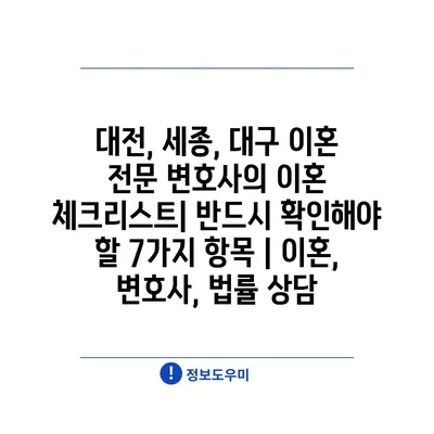 대전, 세종, 대구 이혼 전문 변호사의 이혼 체크리스트| 반드시 확인해야 할 7가지 항목 | 이혼, 변호사, 법률 상담 에 대해 자주 묻는 질문 TOP 5