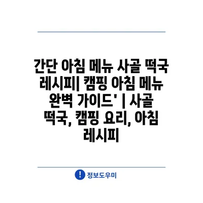 간단 아침 메뉴 사골 떡국 레시피| 캠핑 아침 메뉴 완벽 설명서’ | 사골 떡국, 캠핑 요리, 아침 레시피 에 대해 자주 묻는 질문 TOP 5