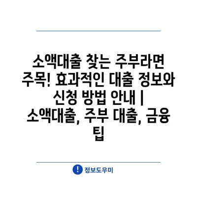 소액대출 찾는 주부라면 주목! 효과적인 대출 정보와 신청 방법 안내 | 소액대출, 주부 대출, 금융 팁