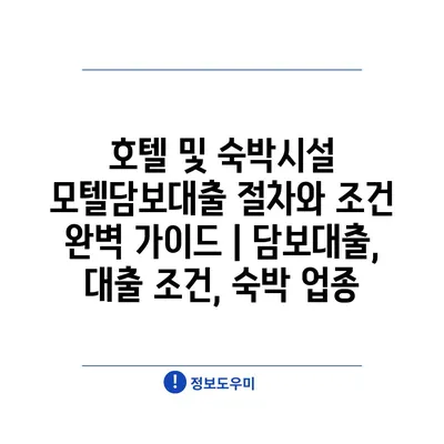 호텔 및 숙박시설 모텔담보대출 절차와 조건 완벽 설명서 | 담보대출, 대출 조건, 숙박 업종 에 대해 자주 묻는 질문 TOP 5