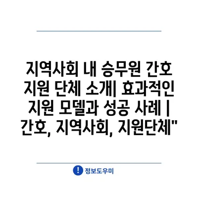 지역사회 내 승무원 간호 지원 단체 소개| 효과적인 지원 모델과 성공 사례 | 간호, 지역사회, 지원단체