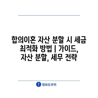 합의이혼 자산 분할 시 세금 최적화 방법은 많은 이들에게 중요한 고려사항입니다.