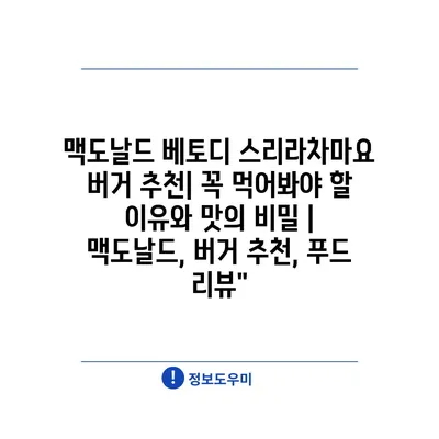 맥도날드 베토디 스리라차마요 버거 추천| 꼭 먹어봐야 할 이유와 맛의 비밀 | 맥도날드, 버거 추천, 푸드 리뷰” 에 대해 자주 묻는 질문 TOP 5