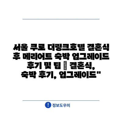 서울 쿠로 더링크호텔 결혼식 후 메리어트 숙박 업그레이드 후기 및 팁에 대해 이야기해보려 합니다.