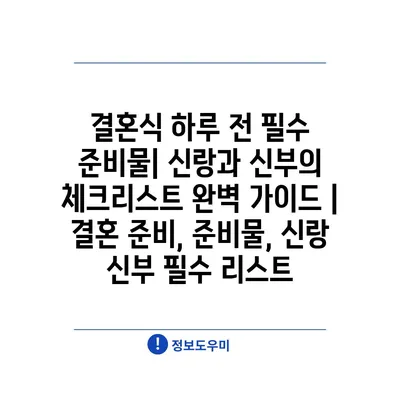✅ 결혼식 전 필수 체크리스트를 지금 확인하고 잊지 말아야 할 준비물을 챙기세요.