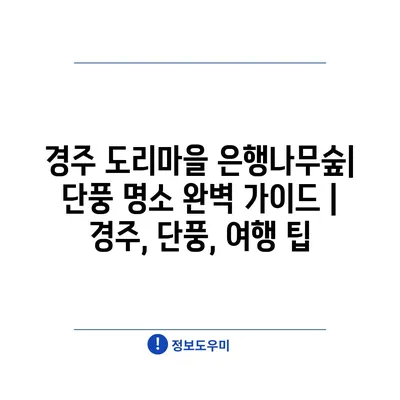 ✅ 경주 도리마을의 아름다운 단풍 명소를 만나보세요!