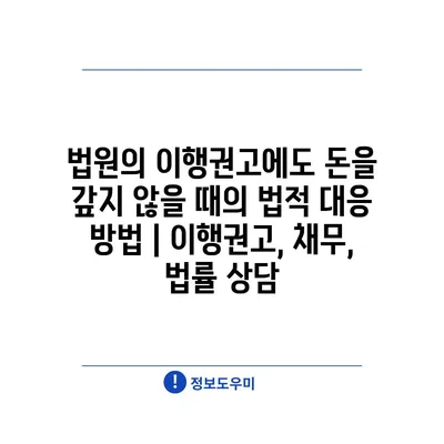법원의 이행권고에도 불구하고 채무자가 돈을 갚지 않을 경우, 법적 대응 방법을 알아두는 것이 중요합니다.