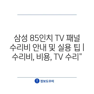 ✅ 삼성 85인치 TV 패널 수리비와 절약 팁을 알아보세요.