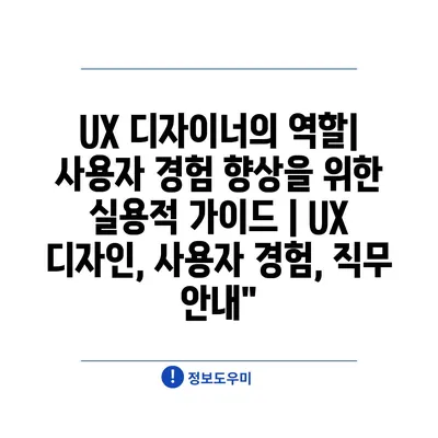 UX 디자이너의 역할| 사용자 경험 향상을 위한 실용적 가이드 | UX 디자인, 사용자 경험, 직무 안내”