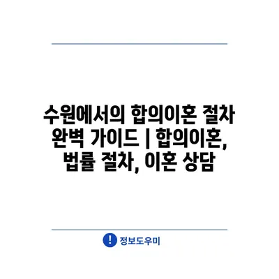 수원에서의 합의이혼 절차 완벽 가이드 | 합의이혼, 법률 절차, 이혼 상담