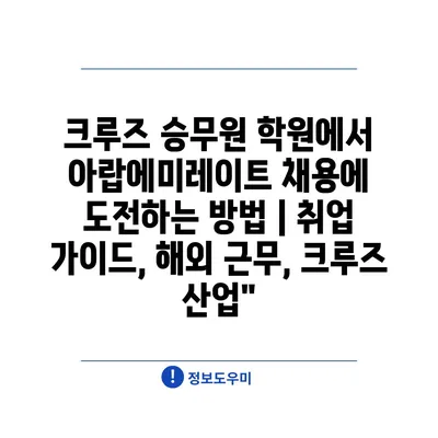 ✅ 아랍에미레이트 크루즈 채용 정보를 지금 바로 알아보세요.