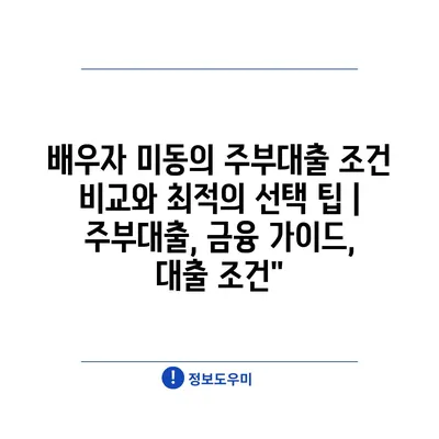 배우자 미동의 주부대출 조건 비교와 최적의 선택 팁 | 주부대출, 금융 가이드, 대출 조건”