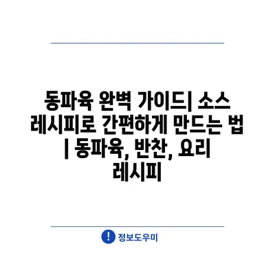 “간편한 동파육 조리법은 바쁜 일상 속에서도 맛있는 요리를 가능하게 만들어 주는 최고의 선택입니다.”