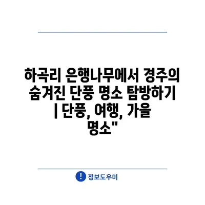 하곡리 은행나무에서 경주의 숨겨진 단풍 명소 탐방하기 | 단풍, 여행, 가을 명소에 대해 자주 묻는 질문 TOP 5