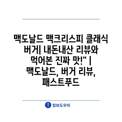 맥도날드 맥크리스피 클래식 버거| 내돈내산 리뷰와 먹어본 진짜 맛!” | 맥도날드, 버거 리뷰, 패스트푸드 에 대해 자주 묻는 질문 TOP 5
