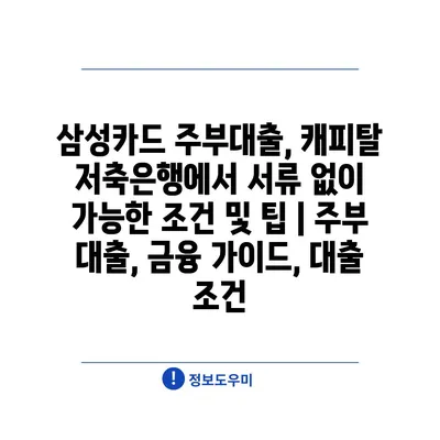 삼성카드 주부대출, 캐피탈 저축은행에서 서류 없이 가능한 조건 및 팁 | 주부 대출, 금융 가이드, 대출 조건