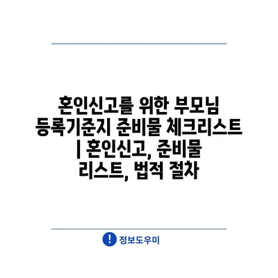 혼인신고를 위한 부모님 등록기준지 준비물 체크리스트는 결혼을 준비하는 부부에게 꼭 필요한 정보입니다.