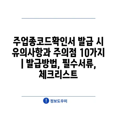 주업종코드확인서 발급 시 유의사항과 주의점 10가지 | 발급방법, 필수서류, 체크리스트