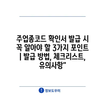 주업종코드 확인서 발급 시 꼭 알아야 할 3가지 포인트 | 발급 방법, 체크리스트, 유의사항”에 대해 자주 묻는 질문 TOP 5