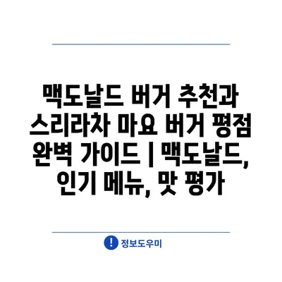 맥도날드 버거 추천과 스리라차 마요 버거 평점 완벽 설명서 | 맥도날드, 인기 메뉴, 맛 평가에 대한 글을 준비했습니다.