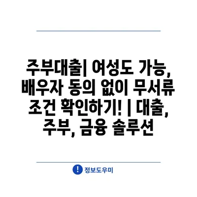 주부대출| 여성도 가능, 배우자 동의 없이 무서류 조건 확인하기! | 대출, 주부, 금융 솔루션