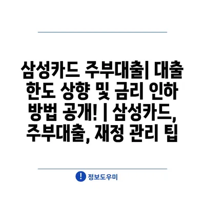 삼성카드 주부대출| 대출 한도 상향 및 금리 인하 방법 공개! | 삼성카드, 주부대출, 재정 관리 팁에 대해 자세히 알아보겠습니다.