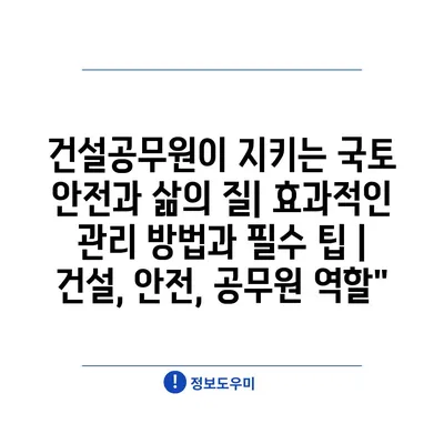 건설공무원이 지키는 국토 안전과 삶의 질| 효과적인 관리 방법과 필수 팁 | 건설, 안전, 공무원 역할