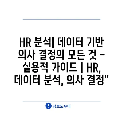 HR 분석| 데이터 기반 의사 결정의 모든 것 – 실용적 가이드 | HR, 데이터 분석, 의사 결정”