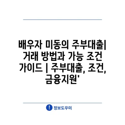 배우자 미동의 주부대출| 거래 방법과 가능 조건 설명서 | 주부대출, 조건, 금융지원’ 에 대해 자주 묻는 질문 TOP 5