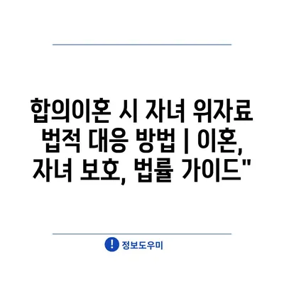 합의이혼 시 자녀 위자료 법적 대응 방법 | 이혼, 자녀 보호, 법률 설명서에 대해 알아보겠습니다.