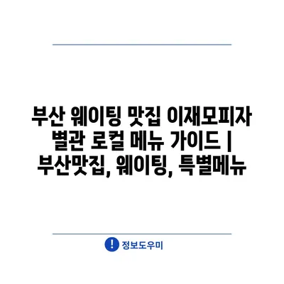 부산 웨이팅 맛집 이재모피자 별관 로컬 메뉴 설명서 | 부산맛집, 웨이팅, 특별메뉴 에 대해 자주 묻는 질문 TOP 5