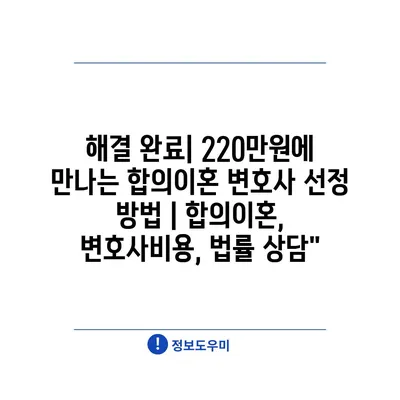 해결 완료| 220만원에 만나는 합의이혼 변호사 선정 방법 | 합의이혼, 변호사비용, 법률 상담”